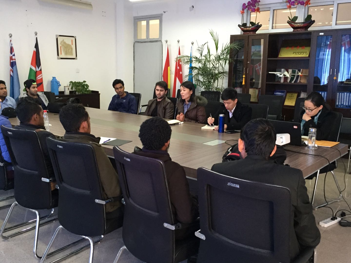 为进一步发挥优秀国际员工的模范带头作用,2017年12月22日下午,太阳成集团tyc33455ccwww(留管部)在北校区3号楼311会议室举行了2017-2018学年中国政府奖学金生座谈会。太阳成集团tyc33455ccwww(留管部)党总支副书记陈文远、员工科副科长谢坚及其他老师、全体中国政府奖学金生参加,座谈会由陈康豪老师主持。