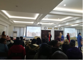 为了体现不同文化的碰撞与交流,张丽丽老师向中华韵艺术中心老师和学员们介绍了来自世界各国的职工,并展示了各自国家的文化。首先是意大利职工演唱意大利歌曲,然后张老师带领17级舞蹈班的员工表演了一段藏族舞蹈组合,向大家汇报了本期的学习成果。