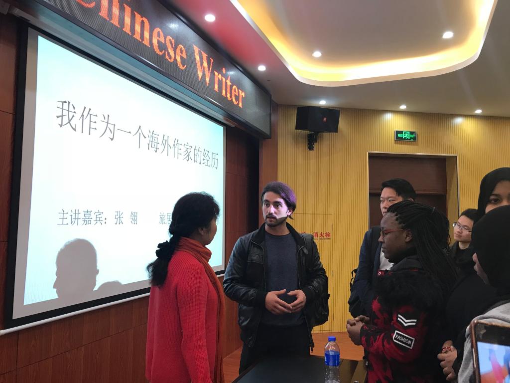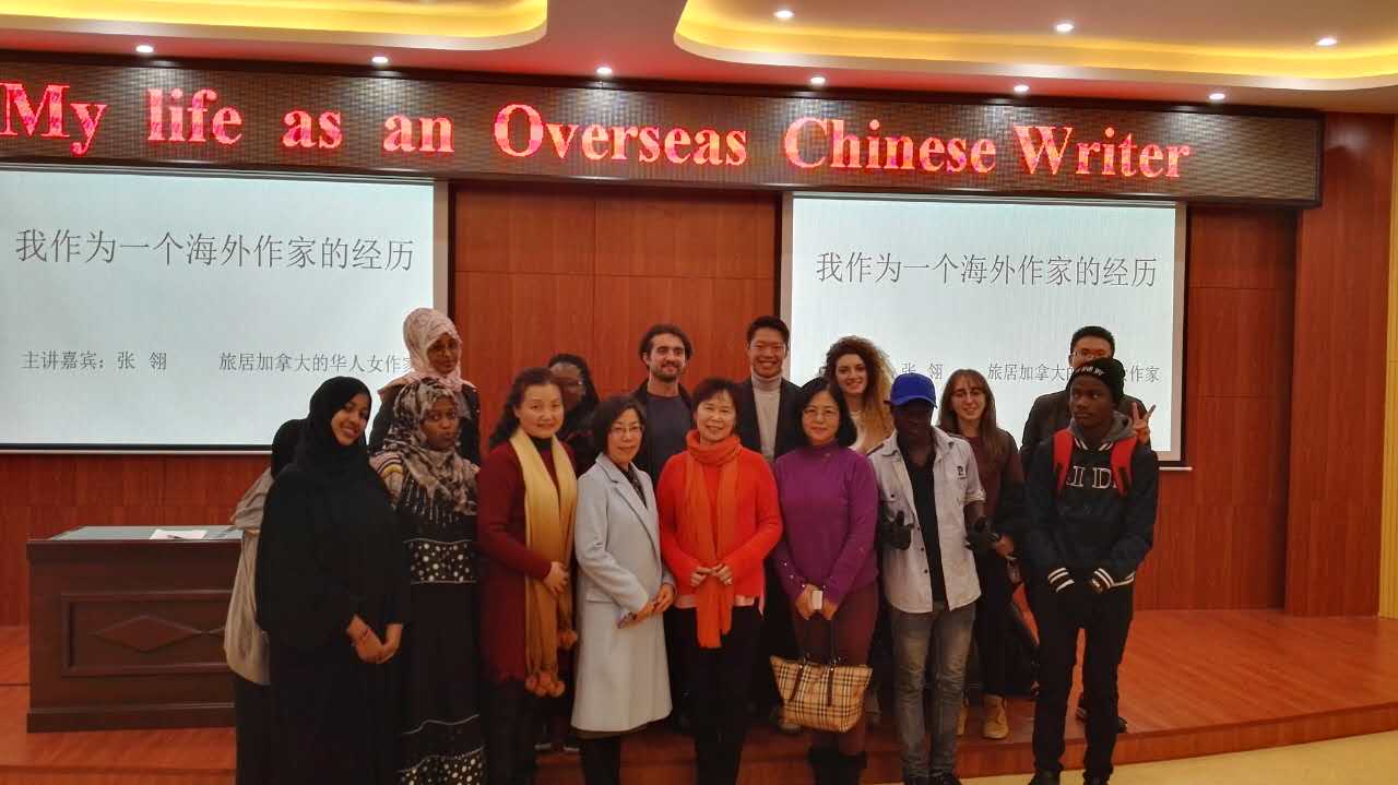 张翎的讲座风趣幽默、娓娓道来,她从“追梦”、实现“作家梦”的心路历程讲起,介绍了自己一路走来的人生经历,讲述了电影《唐山大地震》原作小说《余震》的创造灵感和过程,以及《唐山大地震》上映前后生活上带来的不同变化。讲座中,张翎还朗读了自己的最新力作、长篇小说《金山》的片段。她的朗读声情并茂,令在场师生仿佛身临其境,切身感受到小说主人公的喜怒哀乐和所感所思。在交流环节,中外员工发言踊跃。有人问“您是否将《余震》作为自己作家生涯的巅峰?”张翎坚定地回答:“我一生的兴趣和梦想就是成为作家,所以我不会停止,我会一直创作直到生命的尽头。”意大利籍交换生MARTIN说:“我的梦想也是成为一名作家,张翎老师的倾情分享启迪我应该找回自己最初的梦想,同时要为实现这个梦想坚持不懈。”
