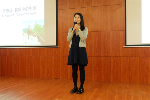 在一首《青花瓷》的古筝琴音后,汉语演讲组比拼开始了。三名选手标准的发音,有趣的故事,让现场180多名观众印象深刻,韩国的李秀珍同学讲述了她眼中的中国,字正腔圆的普通话,声情并茂的表演获得了评委们的一致肯定。