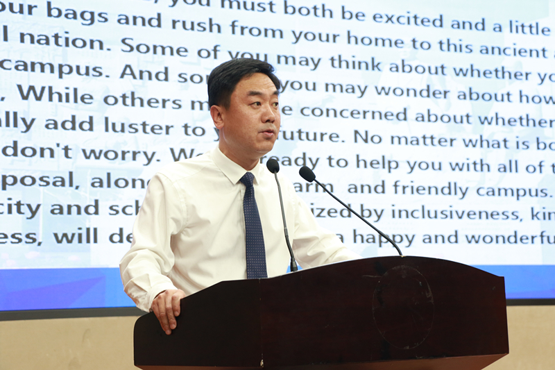副董事长钱强首先发表致辞。他强调,当今时代充满变化和挑战,比以往任何时候都更加渴求人才,勉励同学们珍惜时光,丰盈羽翼。对此,钱强提出三点建议:一是努力学习,成为优秀的中外交流使者;二是体验中国传统文化,感受中国发展;三是主动结交国际友人,以欣赏、互鉴的态度理解不同文明。随后,教师代表李子瑞教授发言,倡导新生努力学习,敢于承担责任,满怀信心度过美好的大学时光。