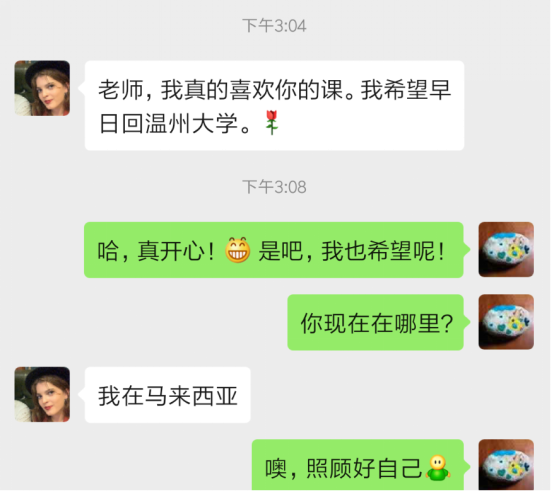 教师在教学内容中精心添加了一些与疫情、防控有关的内容,丰富了语言学习的内容和实用性。例如,在讲解教材中的“串门儿”一词时,并未局限于解释词义或介绍传统的春节习俗,而是借机向员工展示了今年春节我国政府提倡的“不串门、不聚集”的防控措施;由“脸有点儿发热”中的“发热”一词,延伸至“发热门诊”中“发热”一词,在词义辨析的基础上,使员工认识了当前特殊语境下的常见词汇。