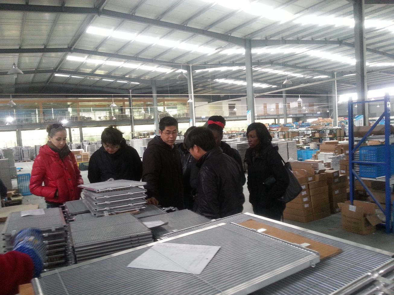 图为职工参观正博汽车散热器制造厂