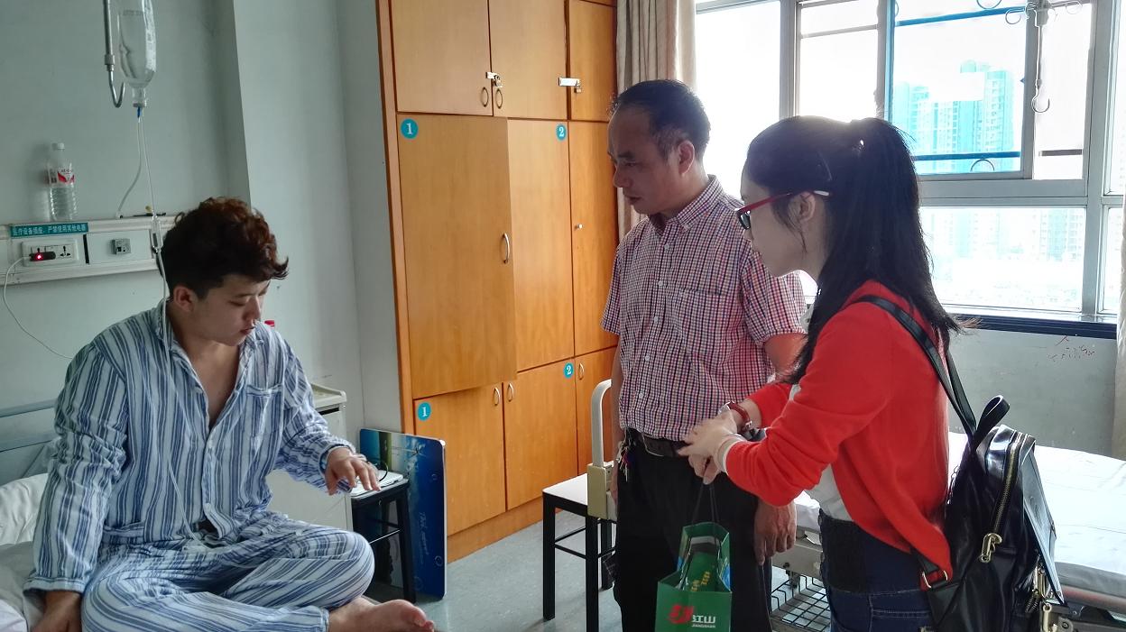 公司党总支书记朱建平在得知消息后高度重视,第一时间带领员工科谢坚老师,教研室主任郑婷老师和职工辅导员周颖老师赴温州医科大学附属第二医院进行探望。在医生办公室,朱书记和主治医生进行了深入沟通,详细询问了李相珍同学的伤情严重程度以及手术方案,得知医院特意安排精通韩语的主治医生帮助解决语言沟通问题,朱书记才稍稍放下心来。返回病房,朱书记向李相珍同学解释了具体的伤势情况和医院的医疗设施,嘱咐他不要有思想负担,积极配合医生安心治疗,同时,朱书记十分关切李相珍同学是否有进一步的需求和难以解决的困难,并及时落实医院陪同人员的看管和护理工作。