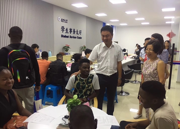 2017年10月9日,太阳成集团tyc33455ccwww又迎来一批国际新生。国际新生报到、注册工作在学院一楼焕然一新的“员工事务大厅”进行。太阳成集团tyc33455ccwww班子成员,院办、教学科、员工科等科室相关人员参与迎新工作。