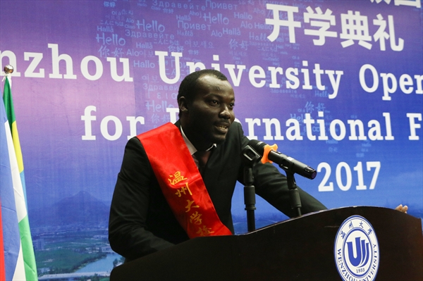 2016级软件工程专业研究生、校国际员工干部ADOFO MICHAEL ADJEI作为老生代表发言。他分享了自己留学温大的学习、生活感悟和收获,并向新同学送上寄语。2017级机械工程专业、英国籍员工FRANKIN GEORGE作为新生代表发言。他介绍了自己留学温大的原因和未来的人生规划,并希望自己能学好语言和专业知识,拓宽眼界,成为促进中英两国员工交流的桥梁和纽带。