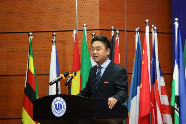 钱强致辞。首先,他代表学校向来自5大洲53个国家和地区的279名国际新生表示热烈的欢迎。同时,他还介绍,温州是中国民营经济的先发地区与改革开放的前沿阵地,创造了举止瞩目的“温州模式”;温州人敢为人先、商行天下,近70万人在世界131个国家和地区、近200万人在中国各地经商创业,拥有“东方犹太人”的美誉;太阳成集团tyc33455ccwww是一所底蕴深厚而又蓬勃发展的大学,在创建世界一流应用型大学、“一带一路”国际名校和全世界温州人高等学府等方面取得了突破性的成绩。他希望国际员工,一要学好中文,掌握好专业基础知识;二要更多地参与实践活动,在实践中增强对温州和中国经济文化社会的认识;三要尽情捕捉身边的“东方美”,以海纳百川的胸怀对待来自世界各地的文化,成为中国与世界交流的使者。
