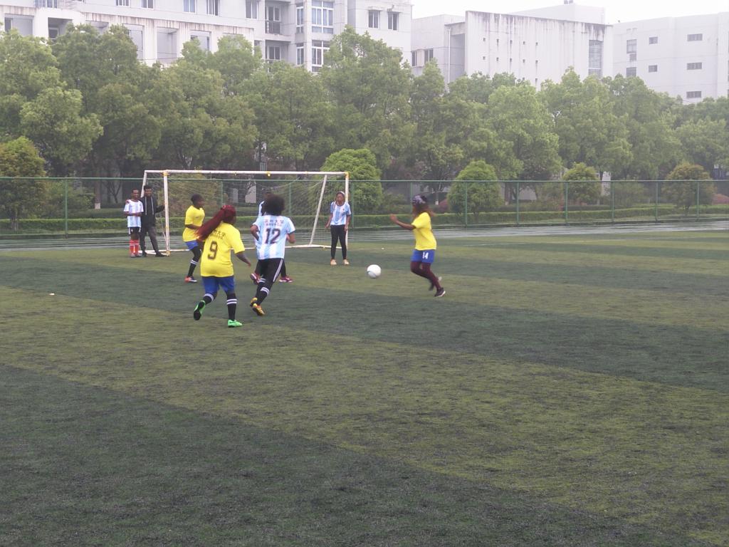 5日早上,虽然天空下着绵绵春雨,但丝毫没影响国际员工参加比赛的热情。北校区足球场上,专家楼和D区公寓楼的国际员工代表们穿着各自队服早早就开始热身等待。赛场上,男子足球率先登场,比赛酣畅淋漓;女足队员们也不甘示弱,她们奋勇争先,为自己的队伍拼搏荣誉。
