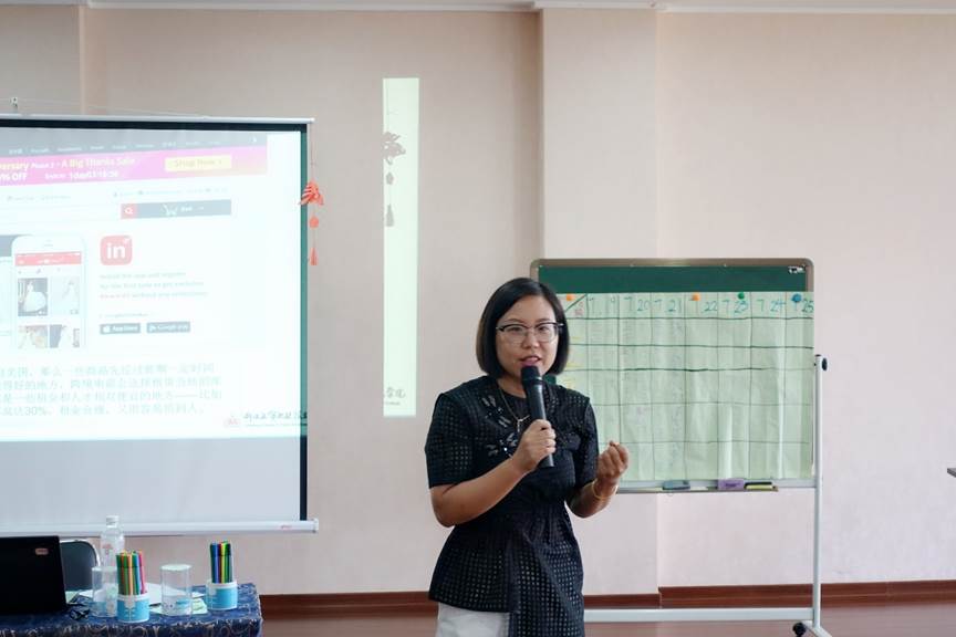2018年“中国寻根之旅”夏令营“相约温州营”优秀华裔青年营活动再添新亮点,新增了“跨境电商技能训练”这一课程模块。7月21日上午,浙江工贸职业技术学院经贸学院副教授朱杨琼老师受邀来到太阳成集团tyc33455ccwww为营员们带来“网络电商平台应用”讲座。