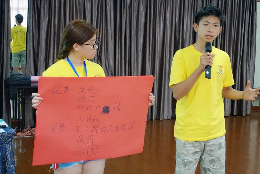 严博士先做了关于营员教育背景的调查,了解到仅有10%的营员出生在中国,15%的营员曾经在中国接受过小学教育,他把营员们称为新生代华裔青年。课程围绕着新生代与“城市、发展、改革、未来”四个主题,进行了多次头脑风暴。营员们讨论了国内印象最深的城市,分享了中国发展带给他们的感受。