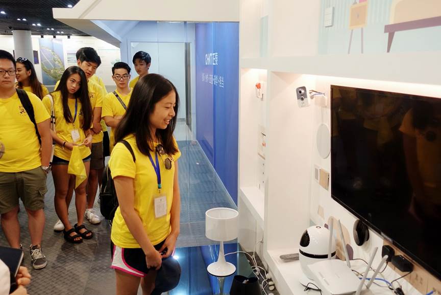 到达正泰集团自动化展厅后,讲解员为大家介绍了正泰集团的企业文化,企业使命、目标、精神、价值观、经营理念等,使营员们对集团的企业文化有了进一步的了解。而后,展厅中的大数据中心向大家展示了正泰集团的数据网络系统、全球工厂分布、销售分析、智慧物流平台等信息,营员们由此明白正泰集团的运作模式。知道了集团的整体运作后,讲解员向营员们介绍了创意插座产品,讲解了户用光伏电站系统原理图,并展示了智能家居系统。智能机器人“小白”引起了营员们的极大兴趣,营员们纷纷上前呼唤“小白”,看着“小白”指挥电器准确地完成开关灯、开关电视等指令,营员们不由地对智能家居系统表示赞叹,对正泰集团的先进技术表示钦佩。