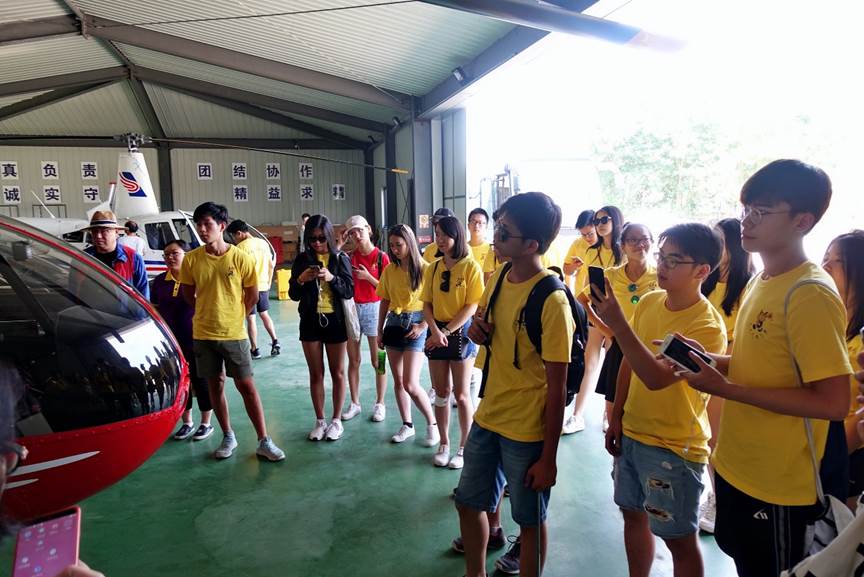 7月31日早上,2018优秀华裔青年商务营来到温州市兴龙通用航空有限责任公司,进行参观学习,并体验了低空飞行观光活动。