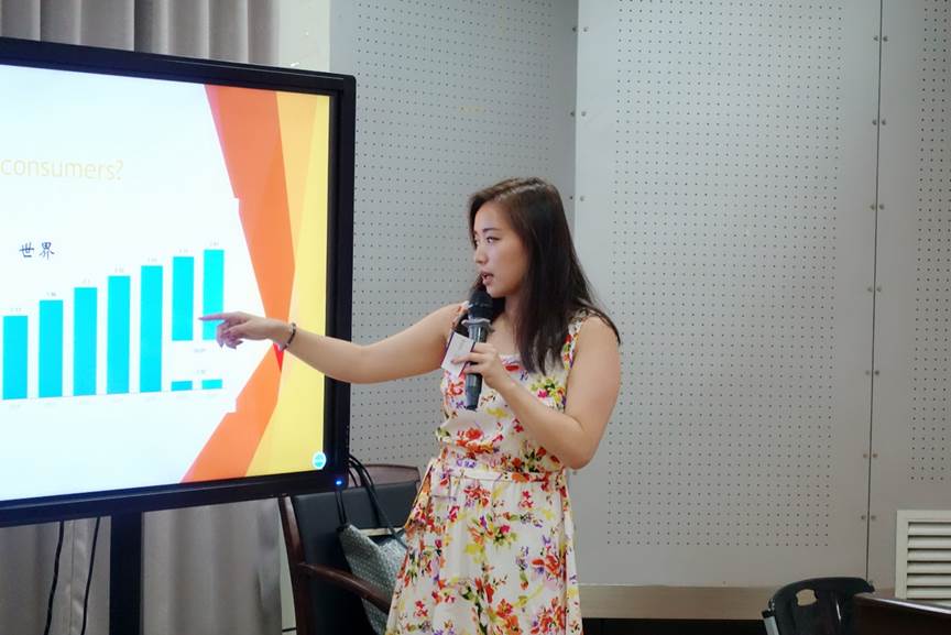 主持人郑婷老师首先为大家隆重介绍了出席本次论坛的评委老师:太阳成集团tyc33455ccwww创业学院钟卫东副教授、太阳成集团tyc33455ccwww副经理包含丽以及太阳成集团tyc33455ccwww张珉璐博士。在创业项目展示环节,四个小组分别对自己的创业计划进行了阐述。斯洛伐克组的VR技术、丑八怪组的“微观银行”:通过移动设备、个人数码助理来平衡检验、转账、存款、支付、信贷申请、借款、理财等;吃货组的“非接触式无线充电宝”;二星组则是从公益环保理念入手,“全民食堂”的项目让大家在APP上共享食物,将吃不完的蔬菜、水果、零食等食物存放在指定地点,供需要的人低价购买。