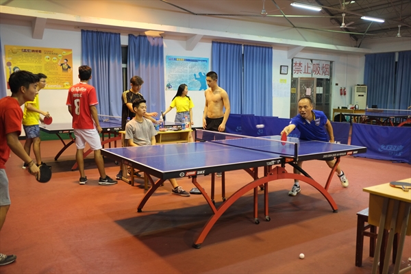 晚上9点,乒乓球赛圆满成功,但大家依旧不愿离去,相互切磋,尽情挥洒着汗水,营员们之间的友谊也在不知不觉间升温了。