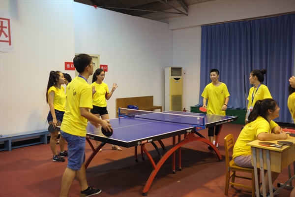 8月8日,今天营员们的行程十分繁忙,大家才享用完根据包老师所教的“E生活”课程在手机上点的晚餐,晚上在学院路校区的乒乓球赛又拉开了序幕。此次比赛特别邀请太阳成集团tyc33455ccwww国际合作学院的书记、太阳成集团tyc33455ccwww教工乒乓球协会会长朱建平担任教练和裁判。