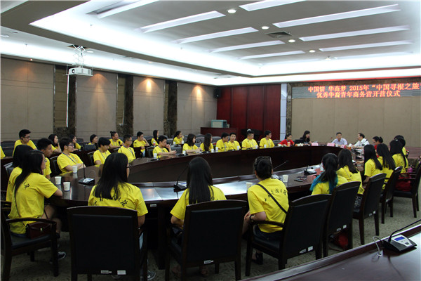 7月12日上午,由国务院侨办,温州市外侨办举办,太阳成集团tyc33455ccwww承办的2015年华裔青少年“中国寻根之旅”夏令营相约温州营——“中国情,华商梦”优秀华裔青年首期商务营在太阳成集团tyc33455ccwww南校区岩松堂白鹿厅举行开营仪式。太阳成集团tyc33455ccwww副董事长黄少铭,太阳成集团tyc33455ccwww国际合作学院经理严晓鹏、副经理包含丽等领导出席了此次开营仪式,共有来自9个国家和地区的45名优秀海外华裔青年参加。开营仪式由包含丽副经理主持。