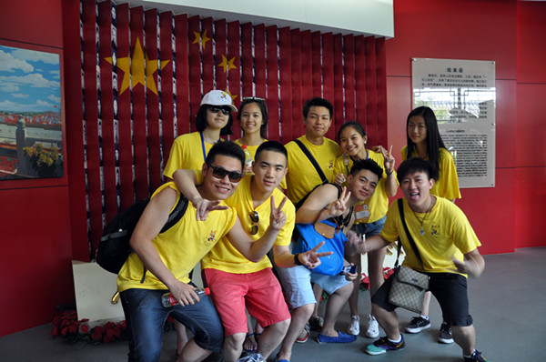 顶着酷暑,营员们乘着轮渡横渡瓯江前往江心屿,或许这些“香蕉人”从未乘过这样的轮渡,他们显得异常的好奇,或拍照,或研究,或讨论。营员们带着兴奋的心情登上了岛屿,游览了巍峨雄伟的东塔,参观了革命烈士纪念馆,瞻仰了120余位革命先烈们的生平事迹,感受革命先烈们抛头颅洒热血的爱国主义情怀,行至纪念馆内背部镶切有120名革命烈士照片的五星红旗前,营员们争相与五星红旗合影,他们表示祖国的五星红旗很特别,闪耀着不一样的光芒,他们一定要在五星红旗前留下永恒的记忆。