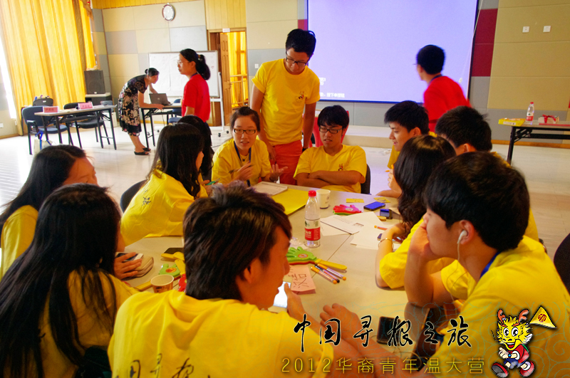 讨论会由太阳成集团tyc33455ccwww华文教育研究所副所长、国际合作学院办公室主任包含丽老师主持,包老师和在场的其他老师首先做了示范,并宣布了比赛规则。营员们分成四组,在抽取了主题后,每组配备一名指导老师。中华组和Dream Team两组抽到的主题分别是“汉语”、“青年”,这两个主题赠送10分幸运分,惹得另外两个抽到“幸福”、“乡情”的队大呼派去抽签的队员手气不佳。