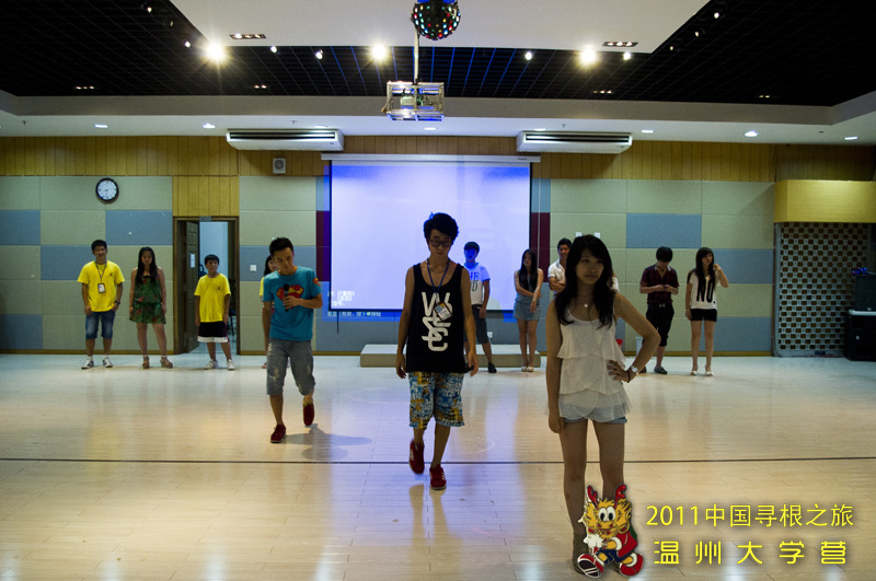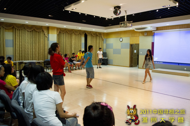 “一二三四、五六七八、二二三四、五六七八……”随着指导老师一声声的拍子声,一群十五六岁的少年们从容自信地向前走去,转身,定型。原来这是2011海外华裔青少年“中国寻根之旅”夏令营温大分营为了最后去杭州参加浙江省侨办的汇报演出举行的T台秀表演训练。