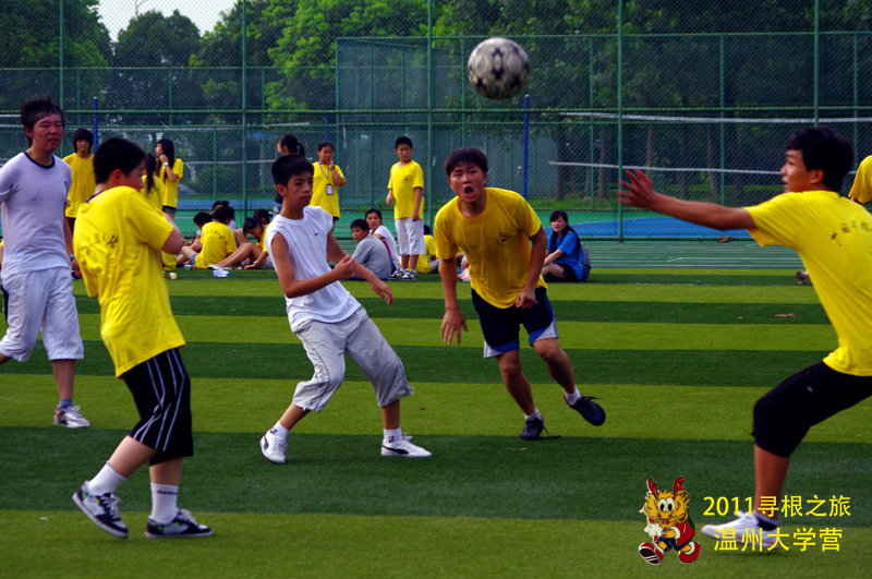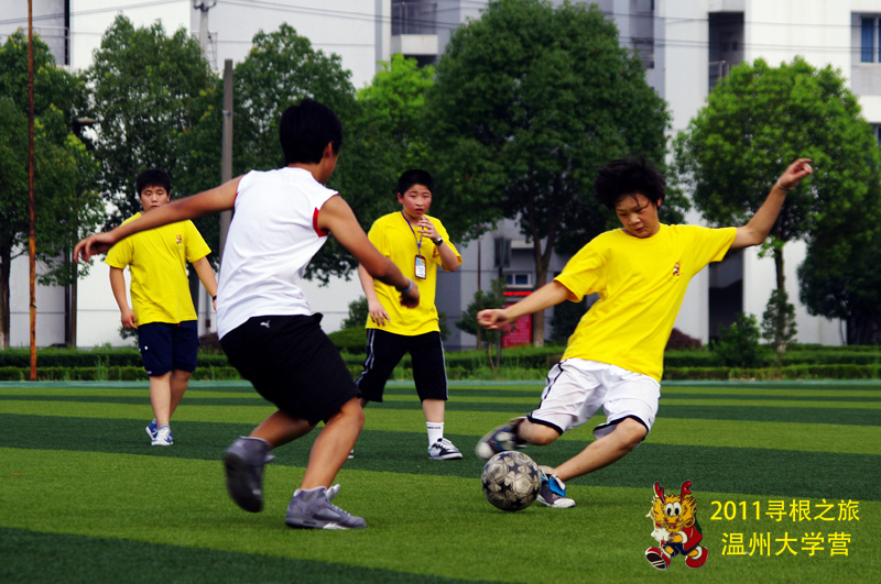 在接下来的足球赛中,营员们更是把“青春动感”演绎地淋漓尽致。绿荫场上,黄色的“中国寻根之旅”的营服格外抢眼,85名海外华裔青少年们集聚温大,第一次真正在自己的故土上奔跑着,欢笑着,呼喊着。