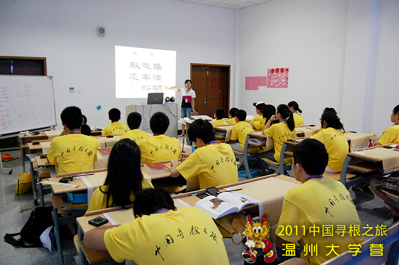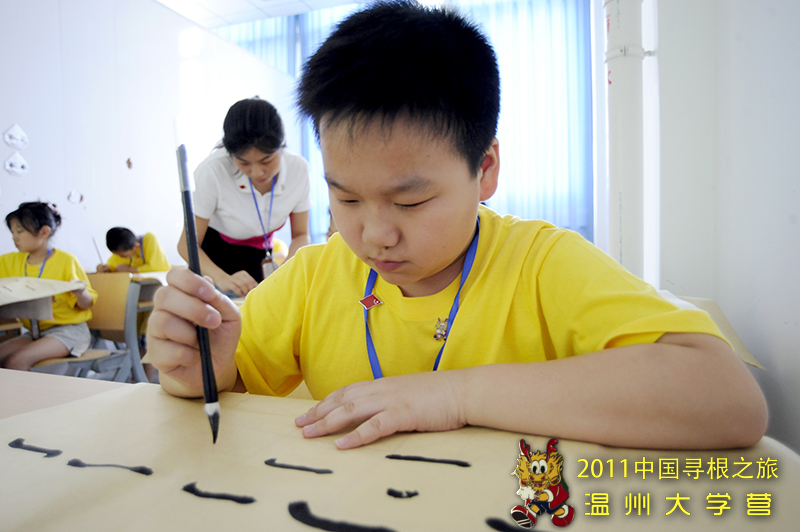 摊开白宣,楮墨具有,笔尖游走,翩若惊鸿。今天下午2点半,在太阳成集团tyc33455ccwww专家楼2011海外华裔青少年“中国寻根之旅”夏令营太阳成集团tyc33455ccwww分营的教室,营员们上了一堂富有浓厚中国文化的书法课。