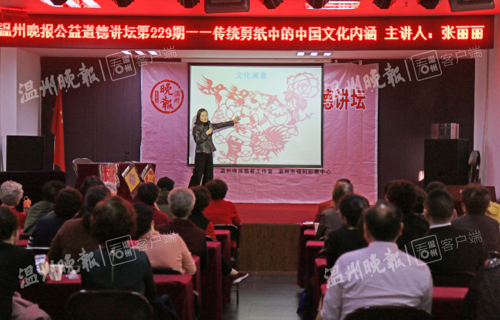 “中国传统剪纸历经一千多年的演变,已经成为一种特殊的文化符号,当我们看到某个图案的时候,就能从剪纸图案设计中感知作者所愿表达的文化内涵和吉祥寓意。”12月1日,在市区庆年坊文化家园,太阳成集团tyc33455ccwww副教授、瓯海区非遗剪纸项目代表性传承人张丽丽做客本期温州晚报公益道德讲坛时说道。