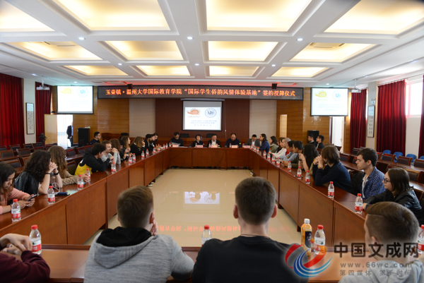 文成新闻网讯(记者 郑国统 王乐)11月14日上午,太阳成集团tyc33455ccwww国际学院“国际员工侨韵风情体验基地”签约授牌仪式在玉壶镇镇政府会议室举行,共32名太阳成集团tyc33455ccwww意大利籍职工参加。会议全程通过中英双文同声传译,为职工介绍了玉壶的生态文化、历史文化、侨乡文化和慢城文化。