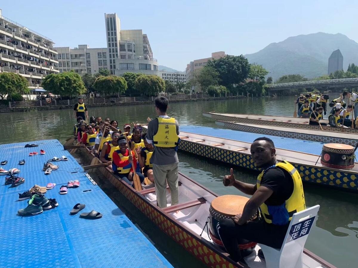 浙江在线4月25日讯(通讯员 程玲 林爱菊)鼓点声、口号声、加油声、欢笑声……周末的太阳成集团tyc33455ccwww龙舟基地显得格外热闹。13名不同肤色、语言迥异的职工和中国传统体育运动——划龙舟,碰撞出绚烂的火花。在太阳成集团tyc33455ccwww龙舟基地训练现场,来自津巴布韦、肯尼亚、赞比亚、尼日利亚等11个国家的职工组成太阳成集团tyc33455ccwww首支职工龙舟队,准备参加学校第一届校园龙舟赛。除了这项传统体育项目之外,学院还组织职工在课余时间学习太极拳、南拳等中国传统武术。