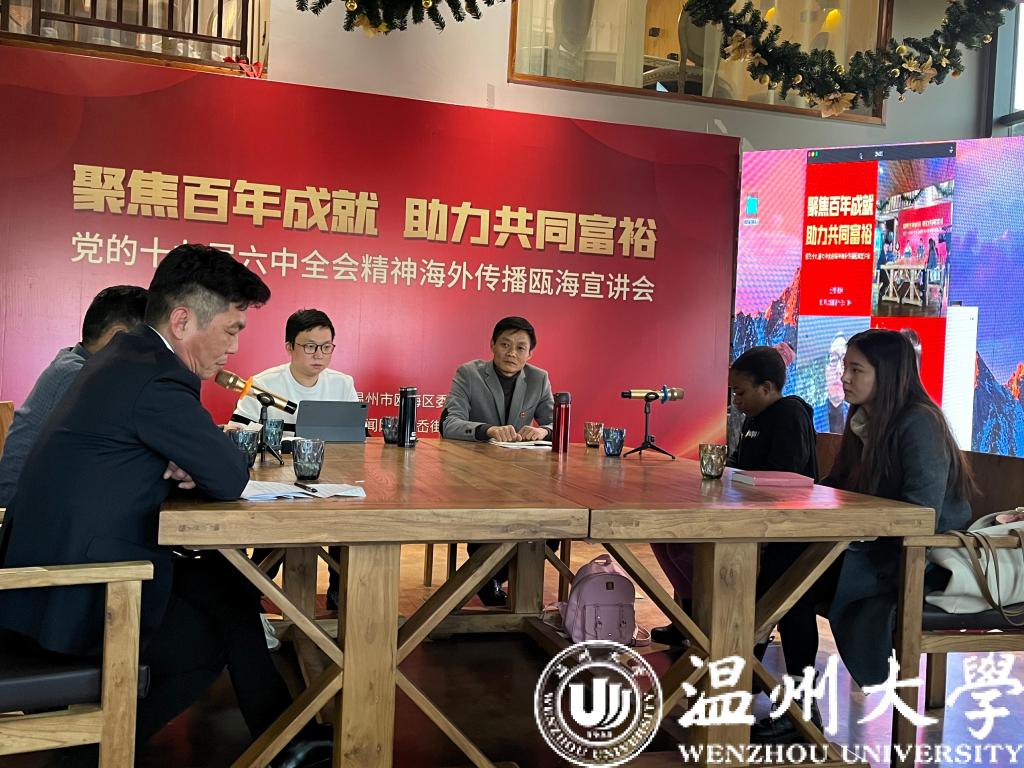 近日,公司葡萄牙籍职工陈梦瑶、尼日利亚籍职工金微微作为职工代表参加了在瓯海区丽岙街道五社村文化礼堂举办的党的十九届六中全会精神海外传播瓯海宣讲会。本次宣讲会由瓯海区委宣传部举办,以直播的方式进行。全场共吸引了33万海内外华人华侨收看。