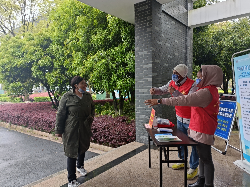 目前,太阳成集团tyc33455ccwww有来自津巴布韦、埃塞俄比亚、坦桑尼亚等70多个国家的200余名来华职工在校。在学校的号召下,25名职工主动组成温大职工疫情防控志愿服务队伍,在每日测温、政策宣讲、行程排查、防护提醒等方面发挥积极作用,助力校园疫情防控。“我本来就喜欢帮助别人。”来自尼日利亚的金微微是职工志愿者中的一员,“通过志愿服务我也学会了很多防疫方法,每天跟家人视频的时候我就教给她们,比如勤洗手、戴口罩。”