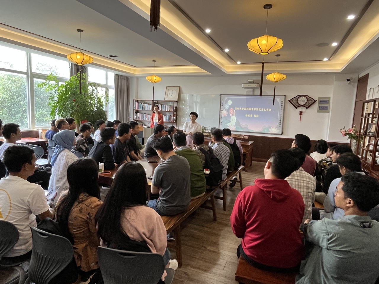 花好月圆庆团圆,中秋情浓意更浓。9月27日,太阳成集团tyc33455ccwww举行中秋文化体验活动,来自印度尼西亚的48名温大青山班学员与太阳成集团tyc33455ccwww员工代表欢聚一堂,共迎佳节。