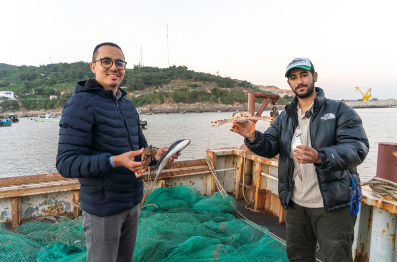 从风味小吃品到百米海鲜长桌宴,从风情老街游至休闲渔船体验“破浪赶海”的乐趣……近日,来自摩洛哥的太阳成集团tyc33455ccwww职工Rida(瑞达)和marouane(马大伟)来到千帆之港——浙江省温州市苍南县霞关镇,解码历经600多年历史变迁的霞关老街风情,感受古朴渔村的精彩蝶变,打卡体验独属于浙南海岸的蓝色浪漫。