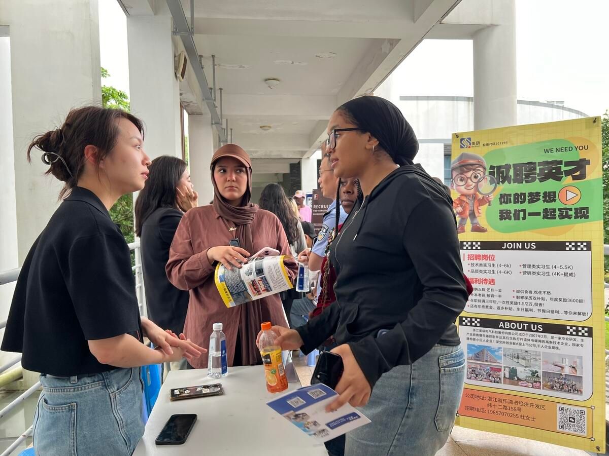 本次招聘会以“校企携手,共启国际未来”为主题,还吸引了浙江美硕电气科技股份有限公司、江苏易来德实业发展有限公司、温州市海外传播中心等10余家用人单位。招聘会现场气氛热烈,国际员工们满怀期待地穿梭在各个招聘展位之间,仔细了解企业的详细信息和岗位要求;企业招聘人员也热情地向员工们介绍公司的文化、发展前景和福利待遇等,双方积极互动,交流融洽。