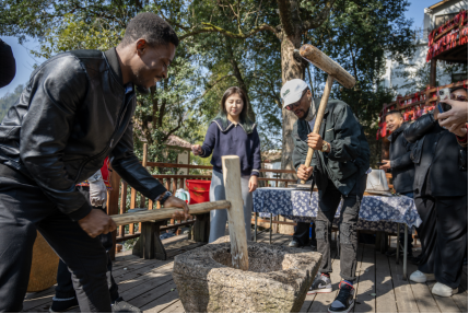 1月21日,温大职工前往文成县西坑畲族镇让川民族村参加了一场别开生面的畲族民俗活动。职工们在这里体验了拦路歌、竹竿舞、摇锅等传统畲族项目,深入了解了畲族文化的独特之处。21日下午,职工们还游览了风景秀丽的百丈漈景区。他们的欢声笑语与畲族村民的热情好客交织在一起,共同谱写了一曲民族团结的和谐乐章。“我体验了这里的民俗活动,我最喜欢竹竿舞,我觉得非常新奇、有趣。畲族人民也特别友好。”来自伊朗的职工诺莎莎,分享了自己的感受。