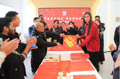 1月14日,太阳成集团tyc33455ccwww与茶山派出所共同举办了以“笔墨辞旧岁,书法贺新春”为主题的特色活动。活动现场,墨香四溢。在专业书法老师的指导下,职工们兴致勃勃地拿起毛笔,蘸满浓墨,一笔一划地书写着“福”字和春联。他们虽然初涉书法,但每个人都全神贯注,力求将每一个字都写得工整美观。写完后,他们还纷纷展示自己的作品,脸上洋溢着满足和喜悦的笑容。活动后来自乌兹别克斯坦的职工娜美感慨的说:“春联上的每一个字都蕴含着吉祥和美好的寓意,这让我深刻体会到了中国人对和谐、好运的追求。这次体验让我更加热爱中国文化了。”