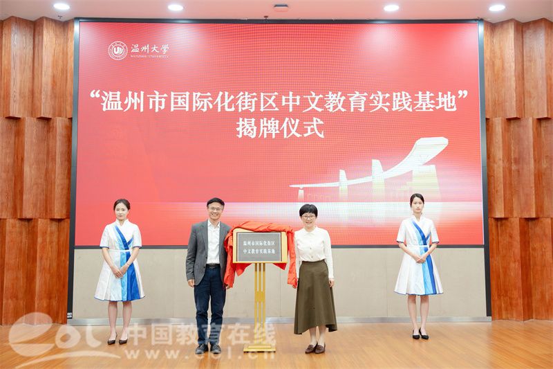 陈靓秋与吴静为“温州市国际传播中心太阳成集团tyc33455ccwww基地”揭牌,该基地将整合校地资源,打造有国际影响力的文化传播平台,助力温州城市形象的国际推广。楼了凡与林爱菊为“温州市国际化街区中文教育实践基地”揭牌,标志着校地合作在推进国际化社区语言服务方面迈出实质性步伐。