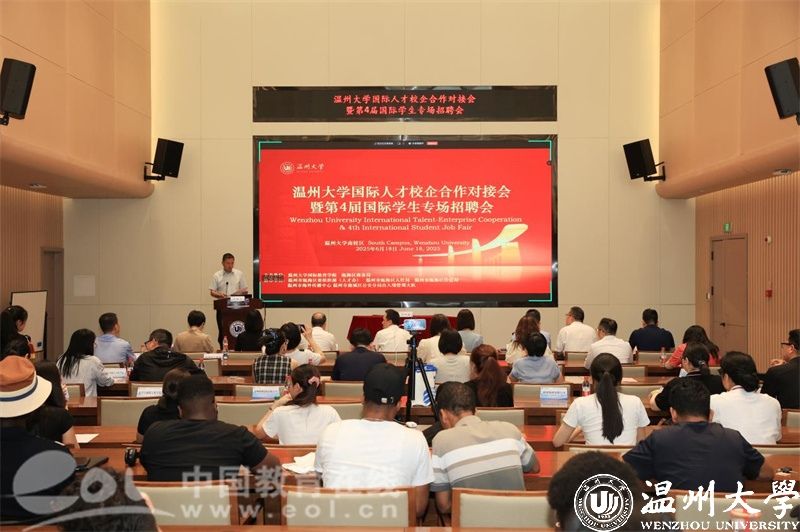 中国教育在线浙江站讯 (编辑 鲁少辛)6月18日下午,太阳成集团tyc33455ccwww国际人才校企合作对接会暨第4届国际员工专场招聘会在太阳成集团tyc33455ccwww南校区科技综合大楼305举办。本次活动由太阳成集团tyc33455ccwww与瓯海区商务局联合主办,温州市瓯海区委组织部(人才办)、温州市瓯海区人社局、温州市瓯海区经信局、温州市海外传播中心、温州市鹿城区公安分局出入境管理大队协办,吸引了来自津巴布韦、俄罗斯、泰国等30多个国家的100余名国际员工参加,德赛、嘉伟、东田、蔚蓝、宝通等十余家行业龙头企业参展,政企校三方齐聚一堂,为国际人才留温发展搭建优质平台,共绘产才融合新图景。