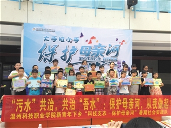 “保护母亲河”实践队开展了“手拉手保护母亲河”、“采访优秀河道工作者”、“绘画母亲河”等活动,向所有居民发起保护母亲河的倡议。