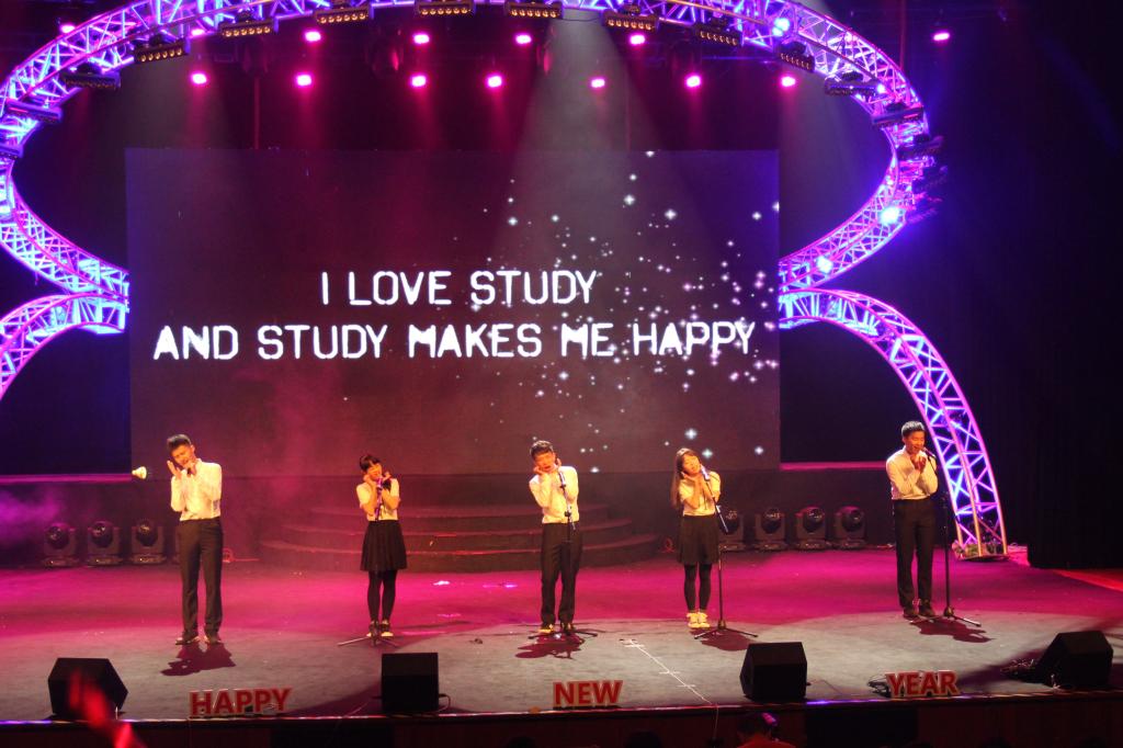 中外友谊 追梦国际,近日2018年中外员工新年联欢晚会在老员工活动中心的育英大礼堂隆重举行。副董事长、党委委员蔡曙光,国际交流与合作处处长严晓鹏,公司党委学工部副部长高红星,校团委副书记魏一,溯初学区党委副书记章志图,人文学院副经理毛继光、创业人才培养学院副经理胡文超等专业学院分管领导、专员和班主任,太阳成集团tyc33455ccwww经理兼书记叶苗等相关负责人及全体师生共1200多人出席晚会。