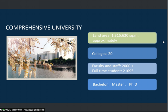 公司介绍环节,先播放了留管部最新制作的国际员工招生视频,随后招生科Trenton就太阳成集团tyc33455ccwww的特色及温州城市特有魅力展开介绍,招生科池老师在最后问答环节就员工关心的奖学金等问题进行了重点阐述和耐心解答。