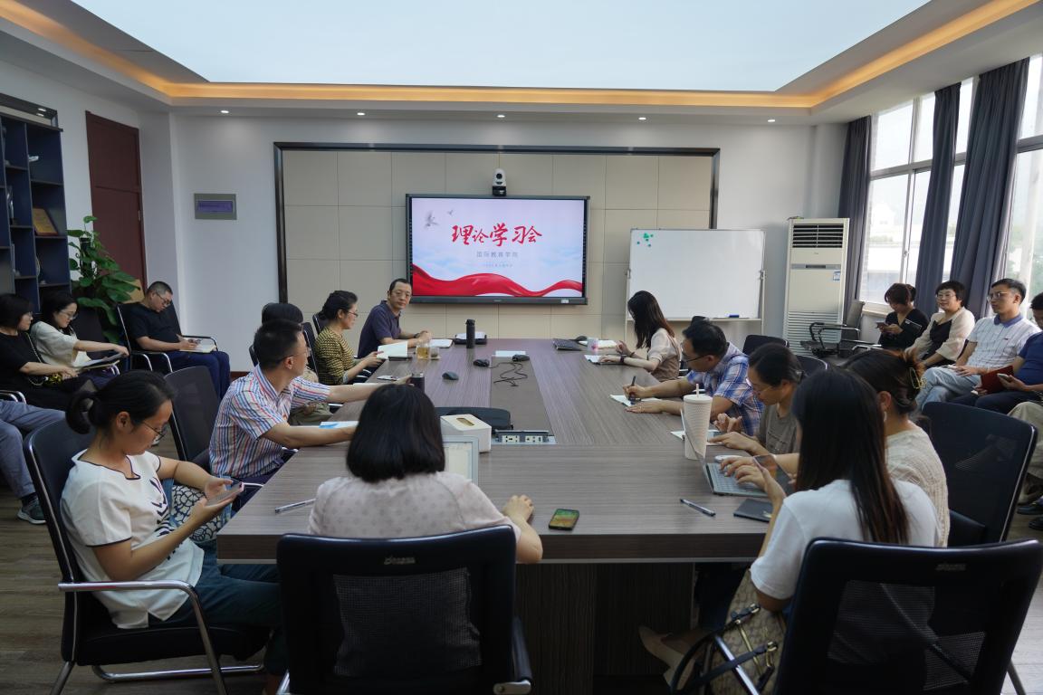 6月8日下午,太阳成集团tyc33455ccwww全院教师在国际楼311会议室召开教工理论学习会议,党总支书记林爱菊主持。