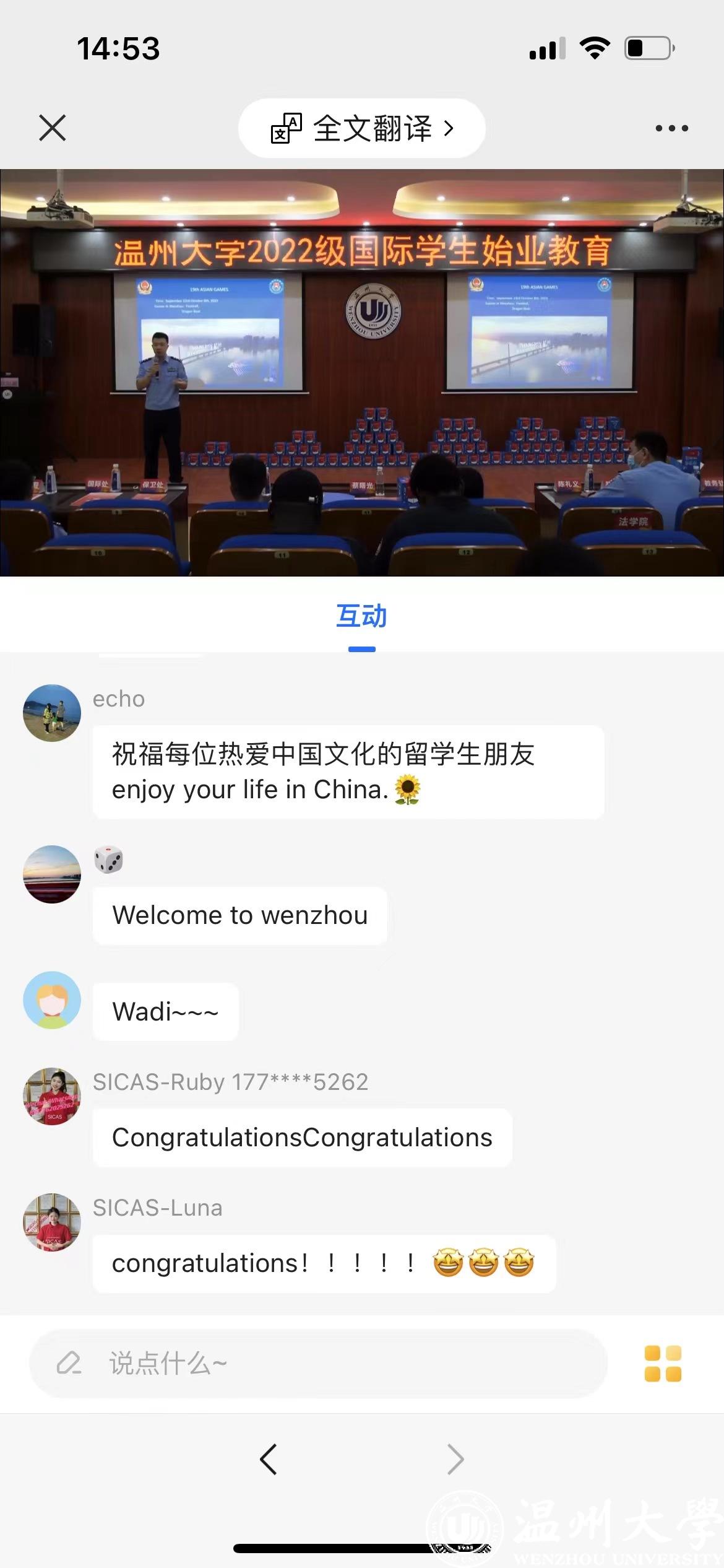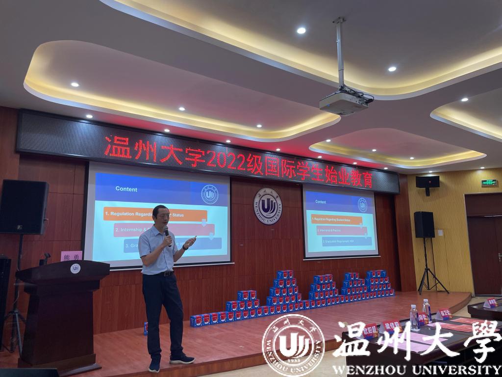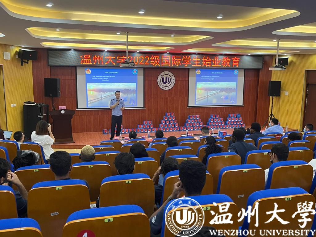 为帮助2022级国际新生全方位了解国情、校情,以全新面貌和昂扬姿态开启留学温大生活。9月15日,为期一周的2022级新生始业教育活动在开学典礼后拉开序幕。温州市出入境管理局欧阳超警官,瓯海区出入境管理大队麻晓军、陈礼义、梁佳莉警官,茶山派出所民警陈海敏,校图书馆吴凤仙,太阳成集团tyc33455ccwww相关科室领导老师,全体国际员工参加了新生始业教育。