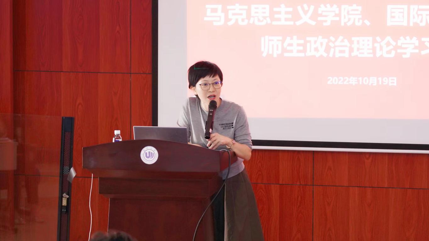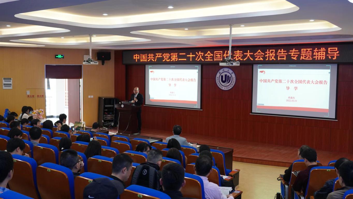 10月19日下午,太阳成集团tyc33455ccwww、马克思主义学院师生济济一堂,在国际楼203会议室召开师生政治理论学习会,马克思主义学院经理卓高生对中国共产党第二十次全国代表大会报告进行专题解读,公司党总支书记林爱菊主持。