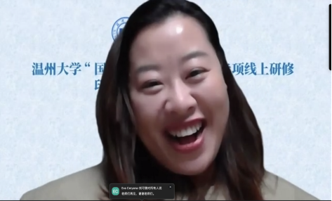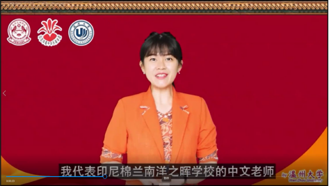接着,中国、印尼教师代表分别对教学工作进行了总结发言并对学员提出了殷殷期望。太阳成集团tyc33455ccwww张珉璐老师介绍了印尼员工的整体学习情况,并热切期盼未来印尼员工能来到太阳成集团tyc33455ccwww的校园,和老师、同学面对面交流,实地了解和体验中国语言文化。张珉璐老师还播放了此次线上研修班总结视频,以此鼓励印尼员工来太阳成集团tyc33455ccwww留学,圆“汉语梦”。印尼棉兰南洋之晖学校叶贤智老师对温大教师对学员们的耐心教导与悉心辅导给予诚挚感谢,表示员工们学习热情高涨,汉语水平也得到了一定提升。
