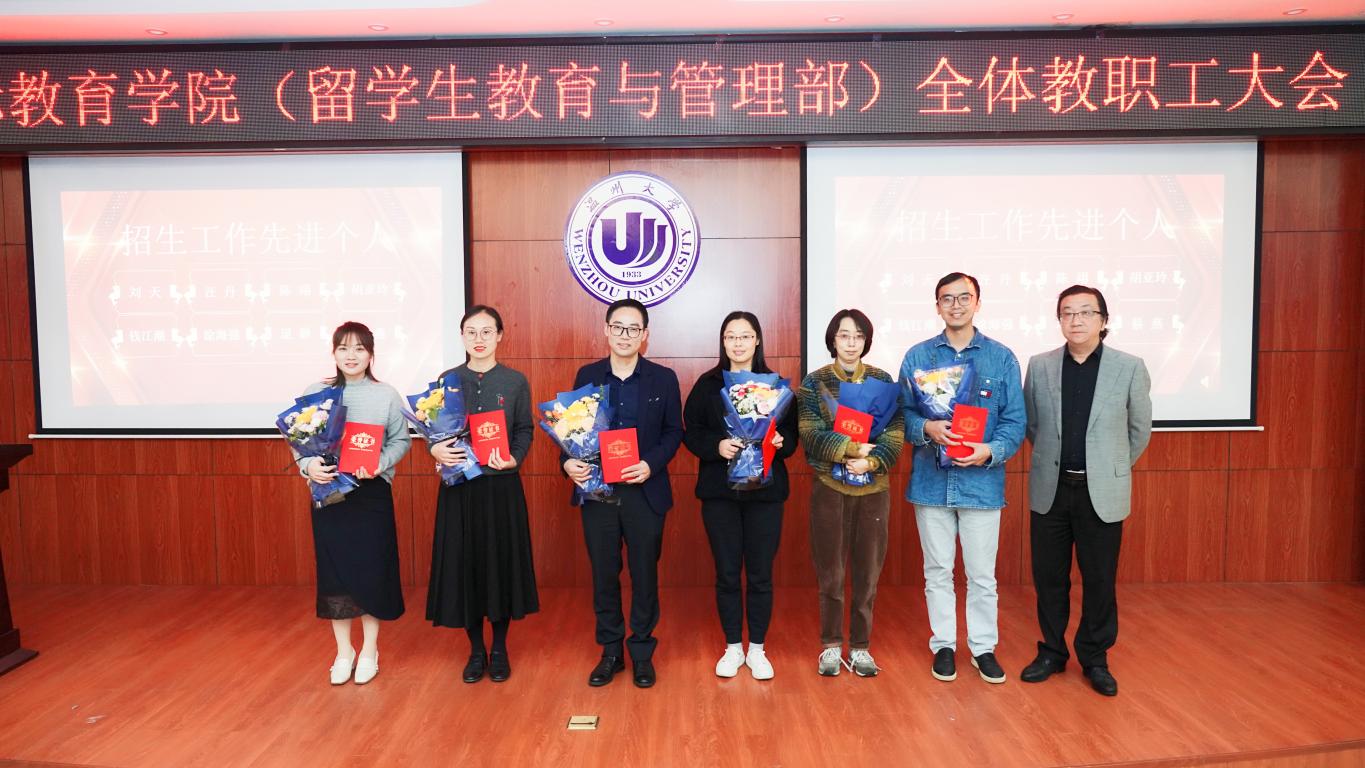 接着,会议对学院发展突出贡献个人进行嘉奖,获奖人员为池轶文、张珉璐、程玲和管丽丽。同时对招生工作先进个人进行表彰,获奖者为刘天、汪丹、陈翊、胡亚玲、钱江潮、涂海强、逯静、蔡燕。