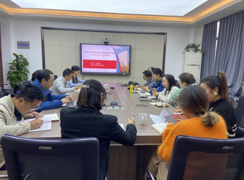 会上,林爱菊书记介绍了中国共产党第二十次全国代表大会的召开的时代背景与基本概况。她指出,党的二十大是在全党全国各族人民迈上全面建设社会主义现代化国家新征程、向第二个百年奋斗目标进军的关键时刻召开的一次十分重要的大会,是一次高举旗帜、凝聚力量、团结奋进的大会。