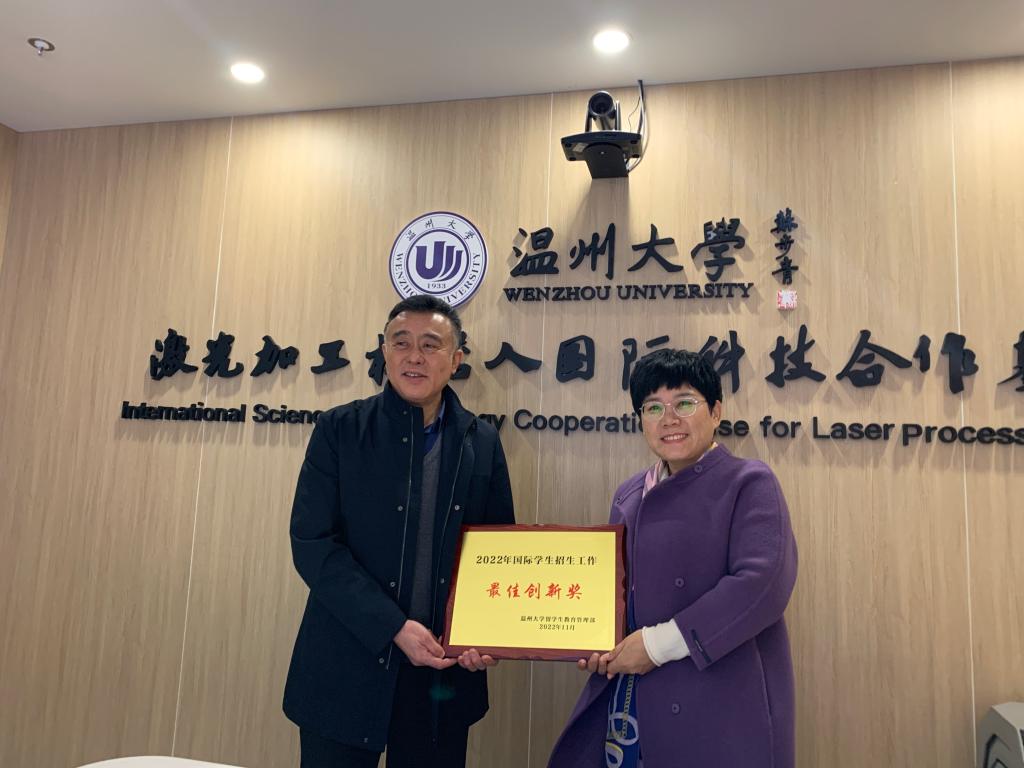 宋占美主任对激光与光电智能制造研究所在2022年招生工作中给予的支持表示感谢,留管部特别授予激光与光电智能制造研究所为2022年国际员工招生工作最佳创新奖。
