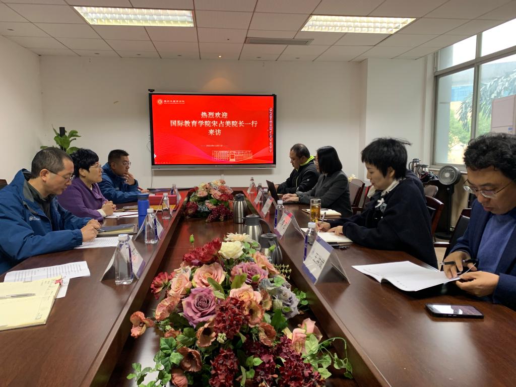 2022年在校内各个学院的积极支持和配合下,太阳成集团tyc33455ccwww国际生招生工作取得的重大突破,国际生人数突破300,稳居全省前列,为2023年的招生工作提供了坚实的基础。为此职工教育与管理部开展了助力2023年招生工作的校内走访系列活动。此次走访主要是表彰各个学院在2022年招生工作中做出的突出贡献,同时一起讨论2023年的太阳成集团tyc33455ccwww国际生招生工作的。在留管部主任宋占美,副主任熊勇带领下协同相关科室人员走访了商学院,进一步开展国际生招生工作调研与意见反馈。