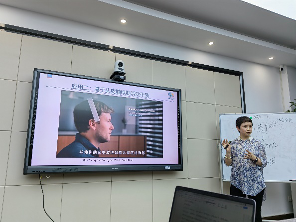 随后,经理李颖洁经理应邀做题为《脑电技术及其在语言学习研究中的应用》的学术讲座。李经理从三方面:引言--神奇的脑电波、如何“用”脑电技术研究以及EEG语言学习相关研究向我们详细阐述了脑电波研究的历史和应用。图文并茂地向我们展示了基于头皮脑电的脑机接口迅猛发展以及基于头皮脑电脑活动干预的蓬勃发展。由此过渡到了脑电技术在二语习得中的作用。最后还向同学们介绍了一些编程的软件,使同学们如获至宝。讲座后,宋经理就讲座的内容进行了精彩的点评,同学们也就自己感兴趣的问题进行了提问。