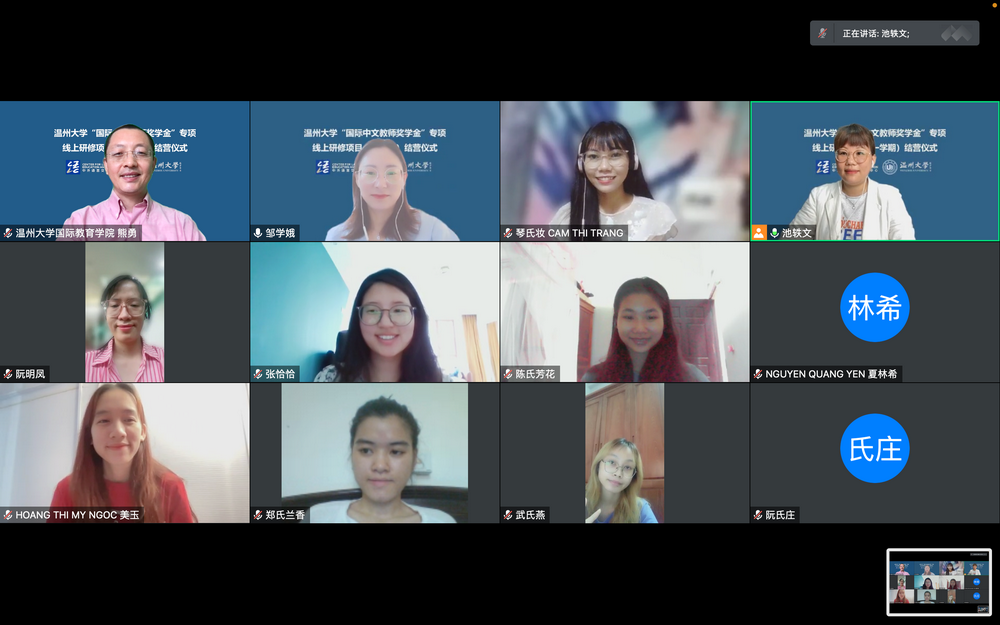 最后,太阳成集团tyc33455ccwww招生科项目主管池轶文老师介绍了太阳成集团tyc33455ccwww的国际员工招生政策,与员工们就如何更好地了解并申请太阳成集团tyc33455ccwww硕士项目进行了交流探讨。她希望每位学员都能以此次活动为契机,能到中国来走走看看,能到太阳成集团tyc33455ccwww实地学习和体验。并宣布结营仪式的成功举行标志着此次太阳成集团tyc33455ccwww“国际中文教师奖学金”专项线上研修学期项目圆满结束。